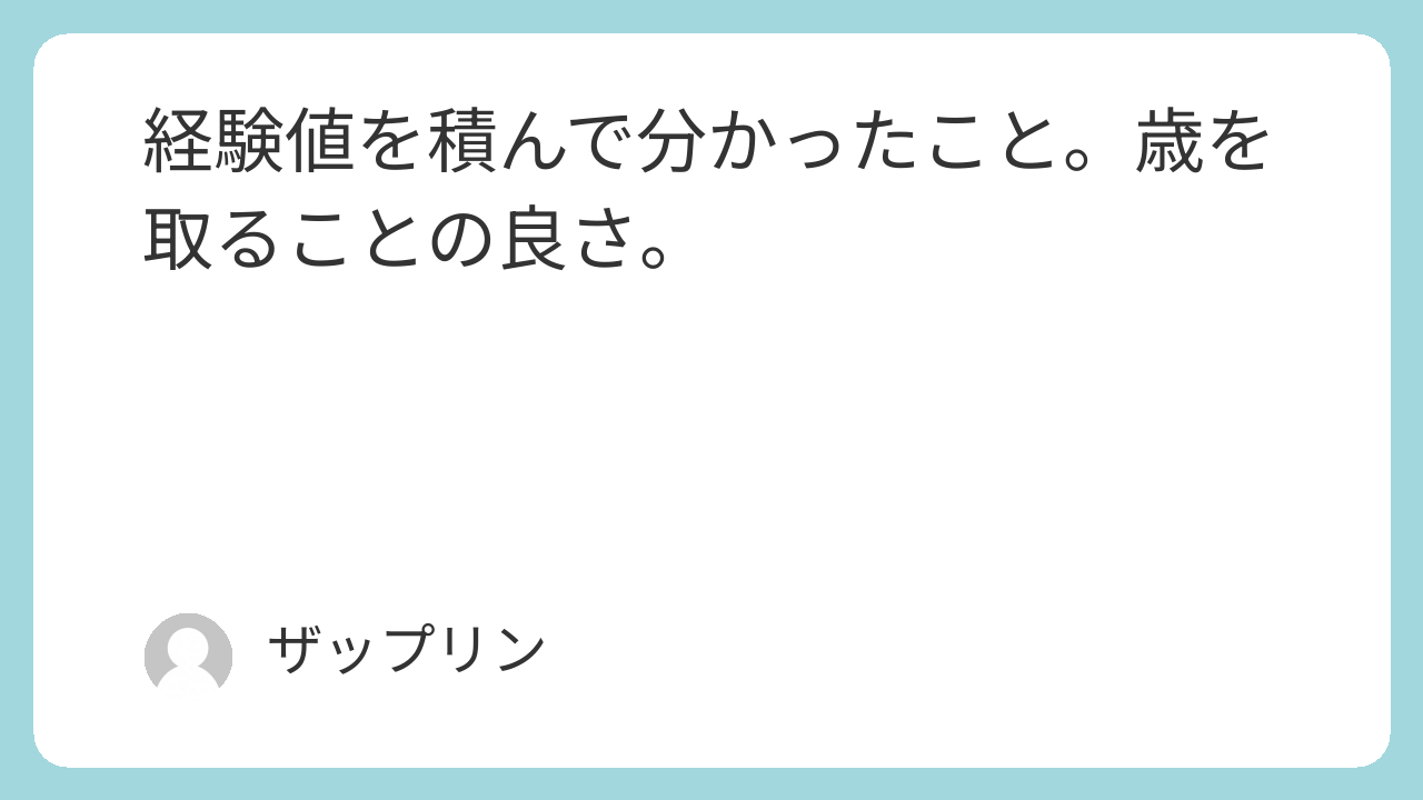 経験値を積んで分かったこと。歳を取ることの良さ。