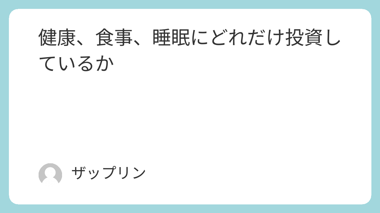 そのために最近意識しているのが、健康・食事・睡眠への投資です。